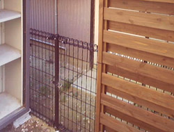 ● マニュアルにはない施工方法で完成! ホームセンターのラティスと比較され最終的に当店のご提案によりプロ仕様の 本格フェンスに決めていただきました。 そんな経緯もあって、少しでも格安にできないものかと工夫した結果、地面に穴を掘って柱を立てる施工法ではなく、既存のフェンスにくくりつけて固定する方法をとりました。 最終的には予算的にも出来上がりにもご満足いただけた苦心の一例です。 |