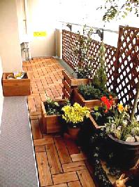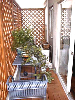 の転倒防止のため、横使いしたフェンスと窓枠とで