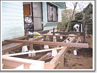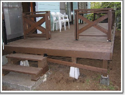 | 以上は江頭様が自ら記された「山中湖WoodDeck製作記」を原文のまま掲載させていただいた ものですが、後日掲載のご快諾とともに以下のコメントを追加で頂戴しました。 「2.7x7メートルのウッドデッキの費用は、解体費7万、ウッドデッキ42万円(送料込み)、 江頭さん、ウッドデッキに挑戦しようかと検討されている方に参考になるコメントを寄せて |