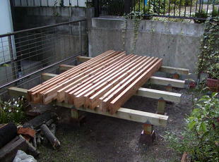 | 施工、本当にお疲れ様でした。なれない作業ですので、腰を痛められたり、いろいろ大変だったかと思いますが、完成のお写真を拝見して、安心いたしました。 お写真を拝見する限り、なかなか見事な出来映えですね。 これからだんだん寒くなってしまうので、確かに外でビールというわけにもいきませんが、寒くなる前に完成したということでよかったです。 |